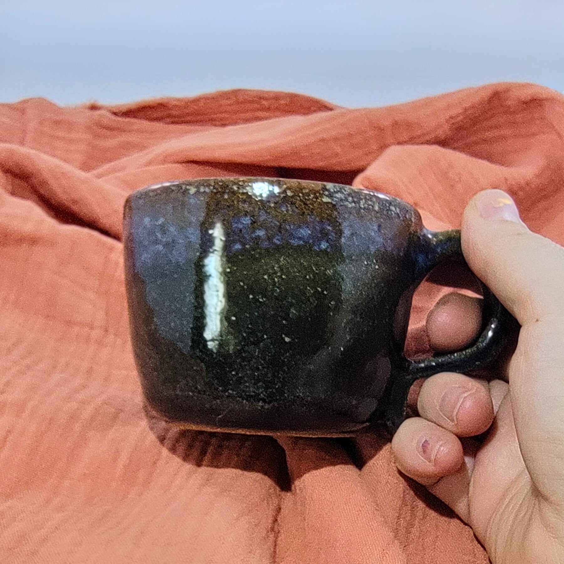 This is a cool darker mug I made with a lighter inside. You can use this to drink a small coffee in the morning, or you can use the cup to hold even parfait. This mug is the perfect size for smaller drinks, or you can enjoy some nice tea with it.